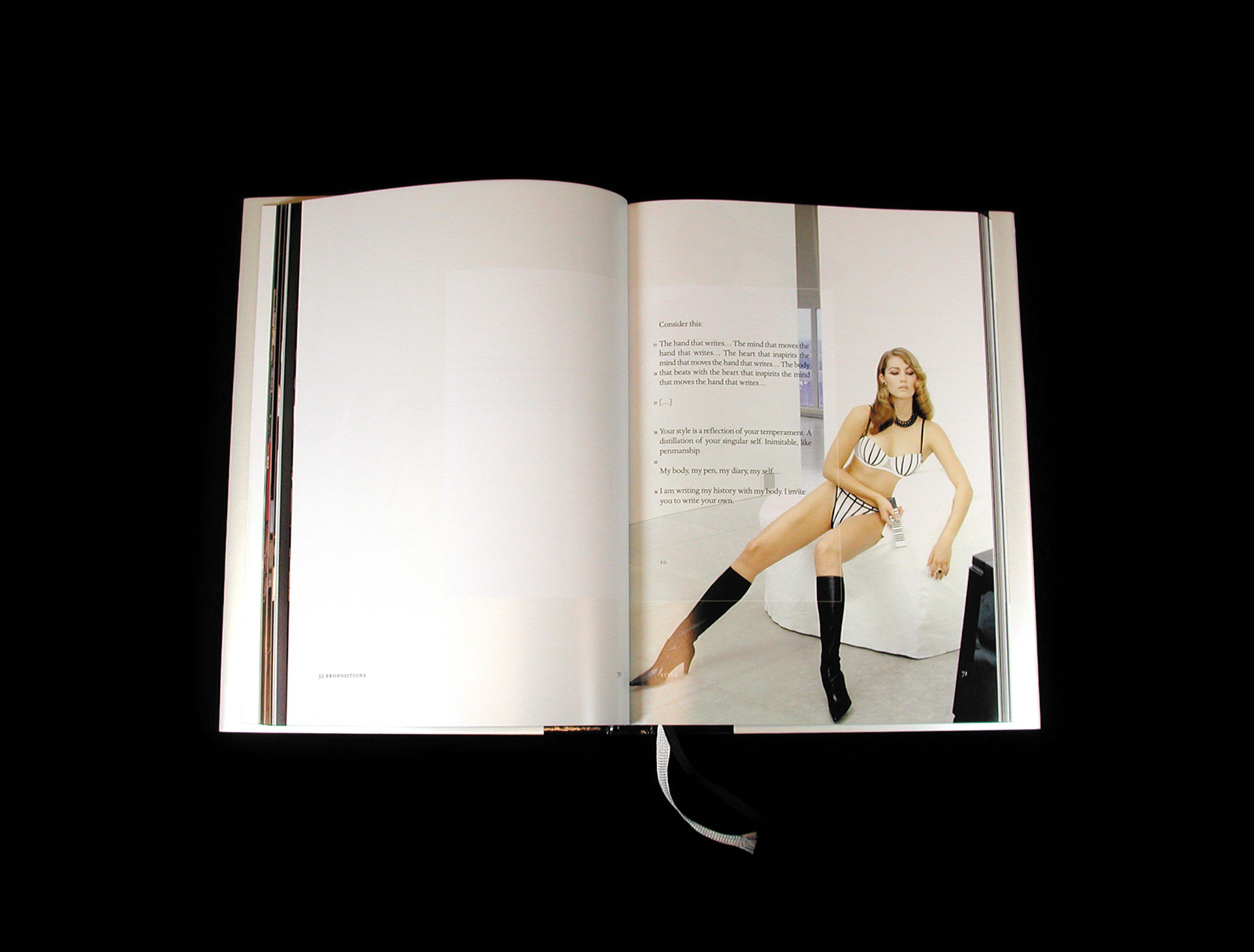 The book unfolds in two parts: the outer edges trace the brand’s journey; the center reveals the 33 propositions like whispered secrets in a diary.